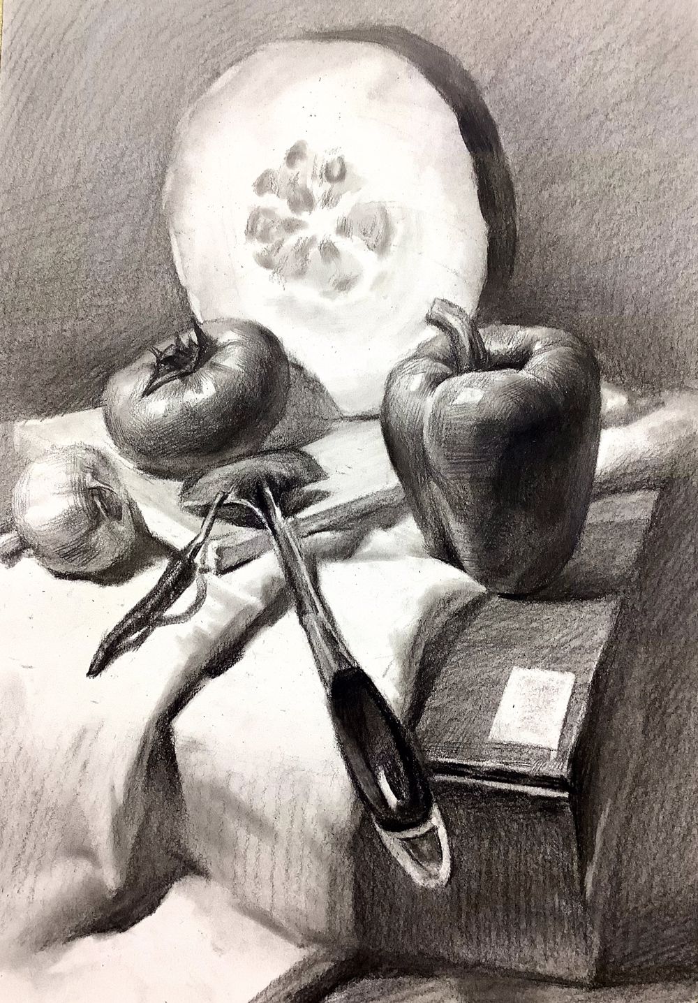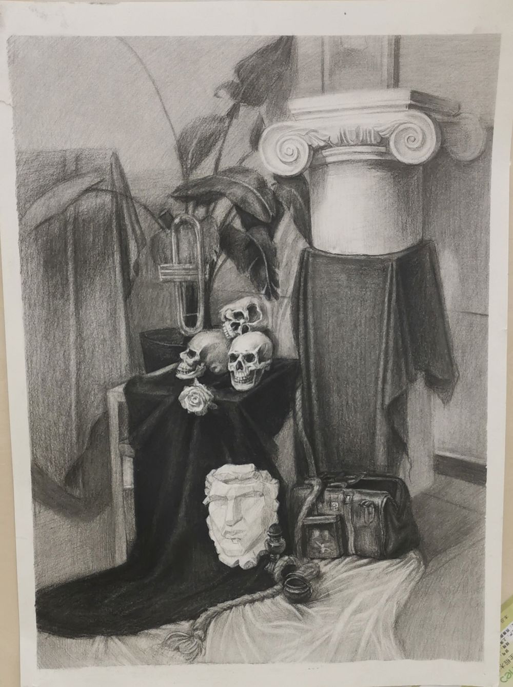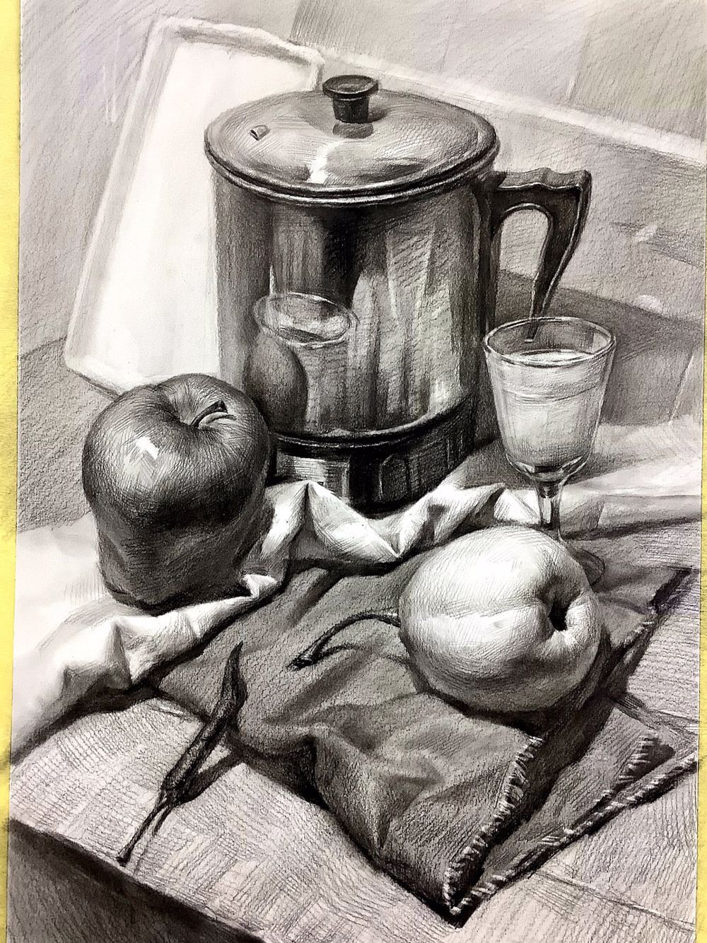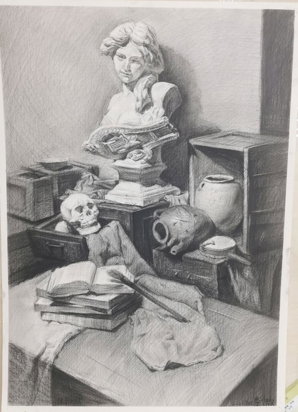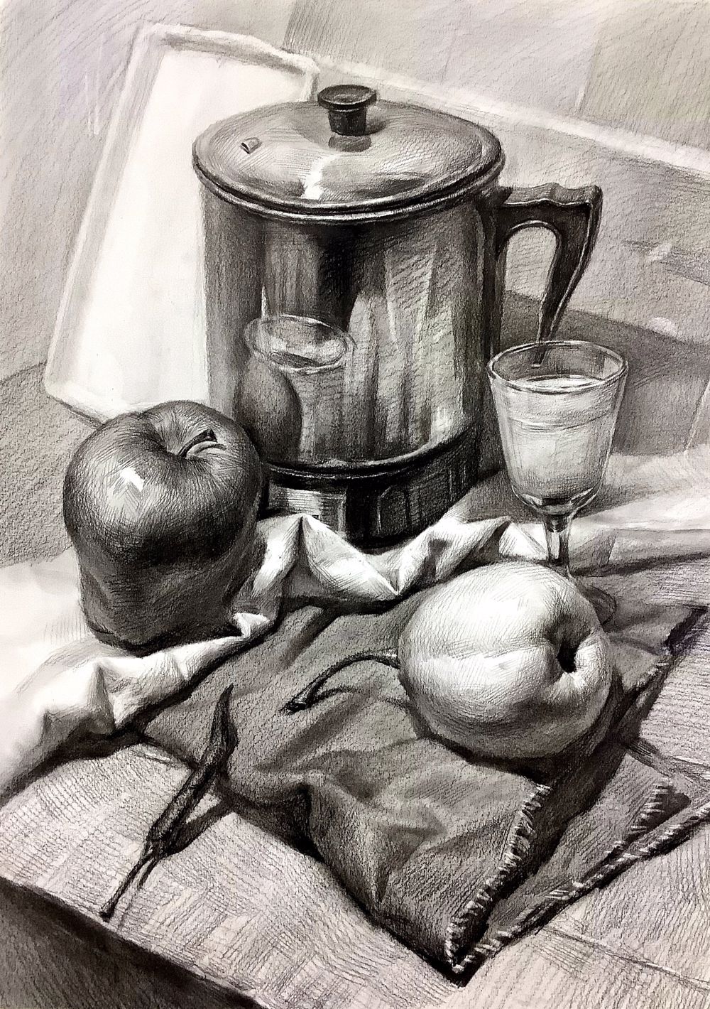 静物素描掌握方法其实画起来是很容易的,这幅作品把静物质感、空间、固有色都发挥的很出色