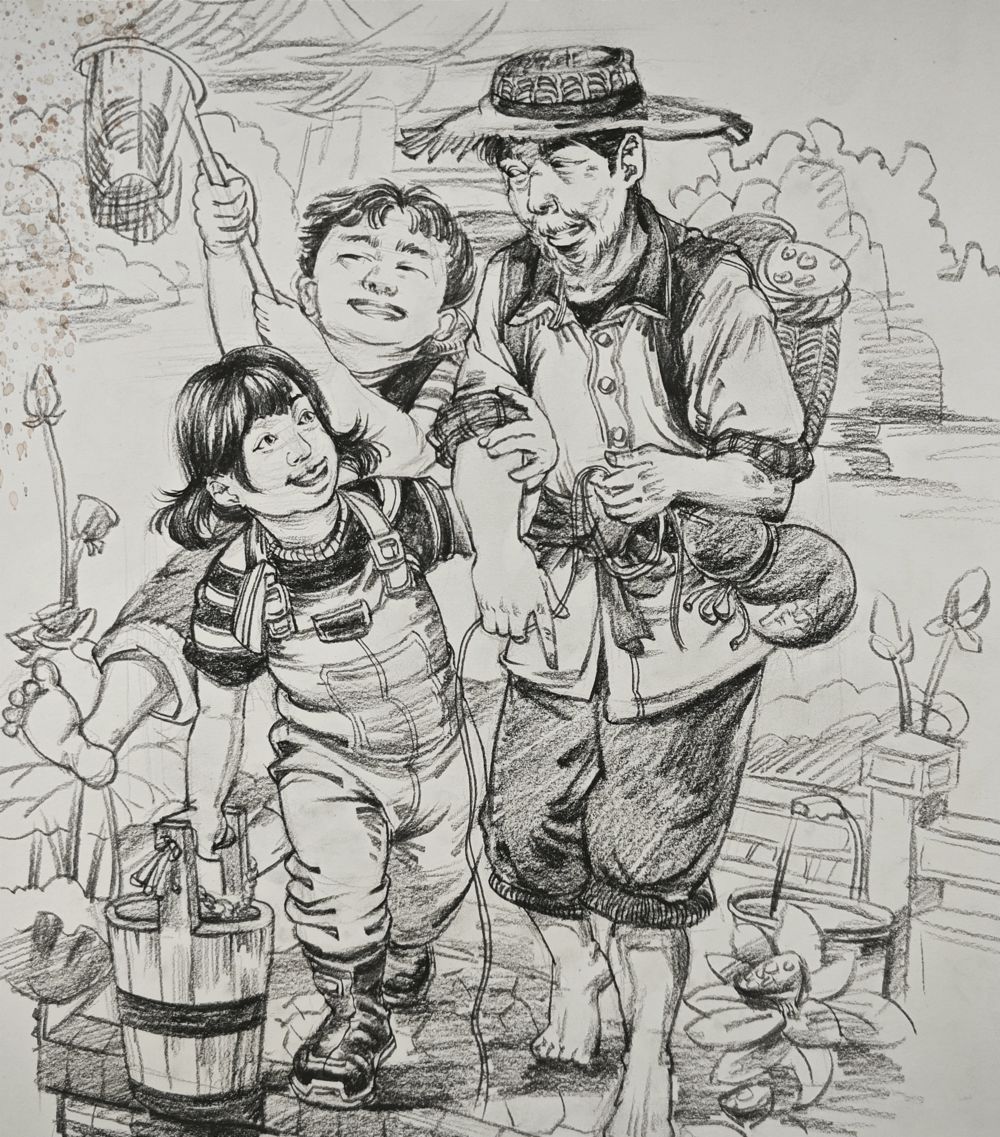 画面把放松的姿态表现的栩栩如生,头部比例把握的恰到好处