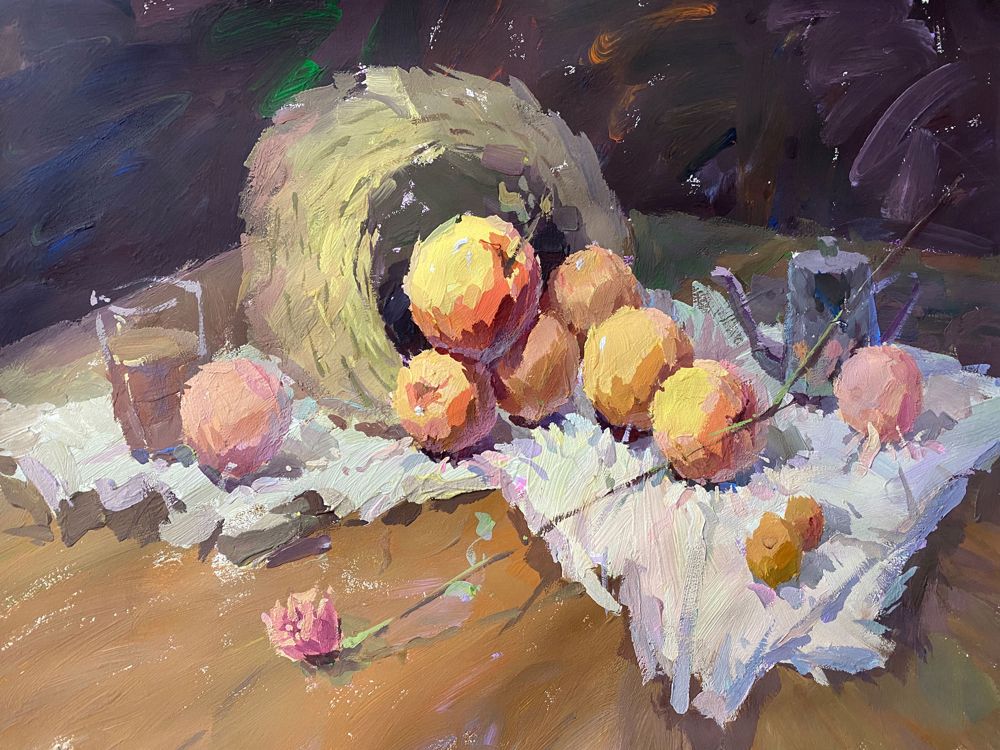 色彩关系明确,对比强烈,物体塑造很扎实