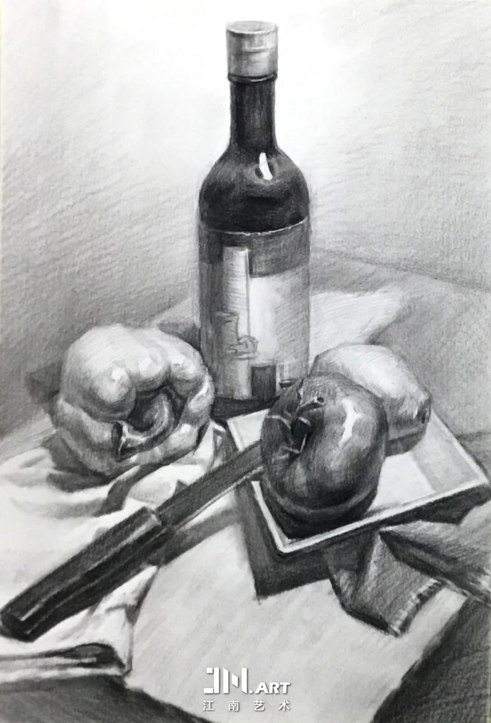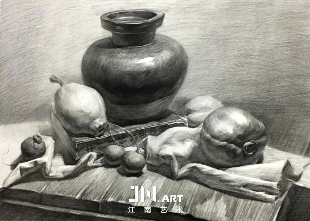 物体体积感很强,松紧虚实的处理手法很好,纯灰关系明确