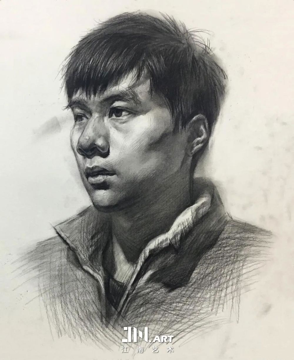 侧脸半身像素描,人物形态与体积把握的完美